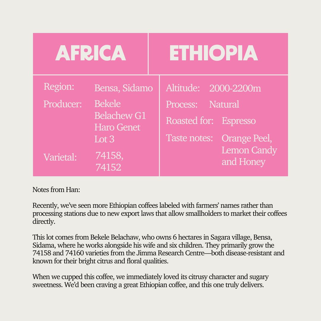 SOE - Ethiopia Bekele Belachew G1 Haro Genet Lot 3 (Espresso)